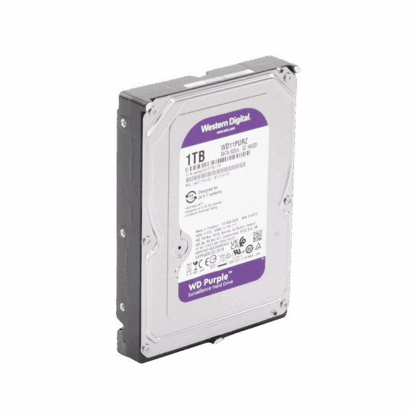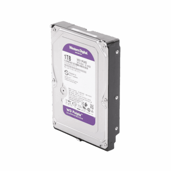 Especialmente diseñado para sistemas de videovigilancia 24/7. El disco WD Purple de 1 TB garantiza una grabación de video fluida y fiable, optimizado para soportar la carga de trabajo de múltiples cámaras de alta definición.